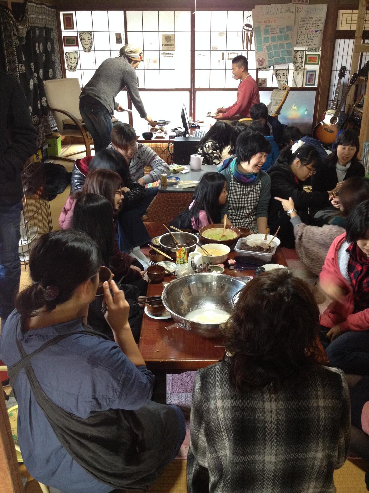 2015年01月06日(火) ひとのまブログ 元島 生 1月5日餅つき 新年最初のひとのまは餅つきでした。 ひとのま学園の親の会のみなさんが開催してくれました。 ひとのまができて4回目の新年。振り返ると毎年違う面白さがあります。 ひとのまは日々変わり続けていて、その時々に集まる人たちで自然に作られていく。それがおもしろいなと思います。 用意された場所じゃないんですね。 今年はどんな場所になるのか楽しみです。 今年もいろんな人たちが、いろんなことを始められる場所であったらいいなと思います。 今年もよろしくお願いします。